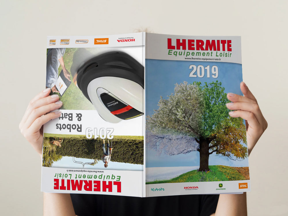 > Conception et réalisation de leur catalogue annuel, avec 2 sens de lecture recto/verso.